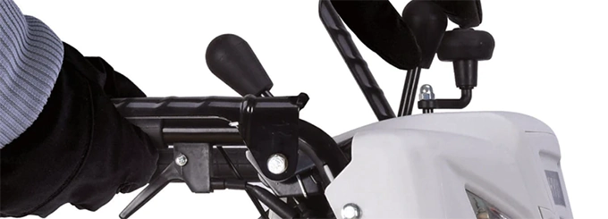 Несмотря на солидные габариты и вес (105 кг), снегоуборщик отличается хорошей управляемостью. Система блокировки дифференциала позволяет заблокировать одно колесо, чтобы развернуться практически на месте, что критически важно при работе в стесненных условиях двора или между постройками.
