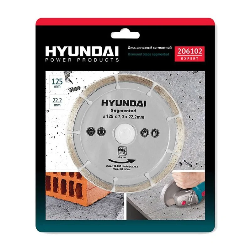 Для резки с помощью болгарки Hyundai бетона, кирпича и камня.
