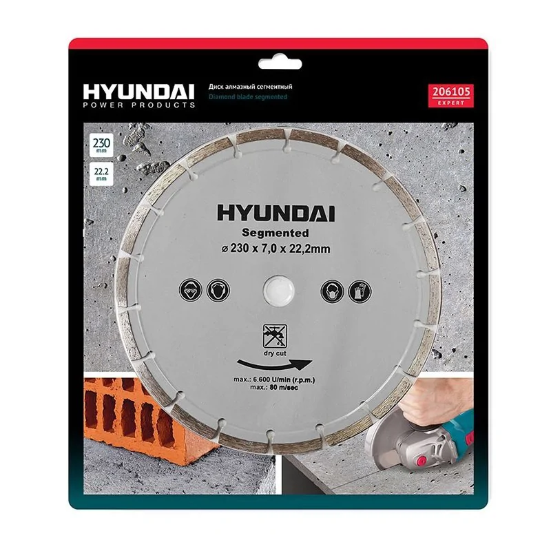 Диски для болгарки Hyundai имеют компенсационные прорези и не требуют дополнительного охлаждения водой во время работы.