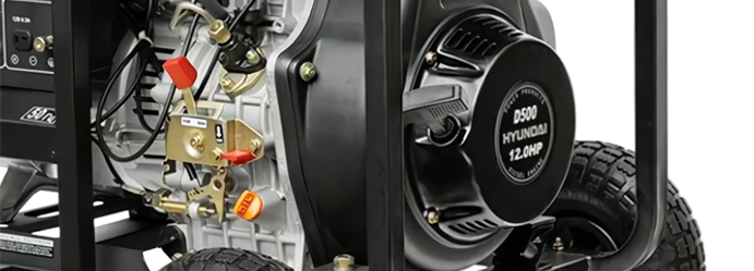 Генератор Hyundai DHY 8000LE оборудован фирменным четырехтактным двигателем D450E с ресурсом более 1500 моточасов. Инжекторная система прямого впрыска способствует экономичному расходу топлива – одного бака хватит на 11,5 ч работы при нагрузке 50% от номинальной. Открытое исполнение обеспечивает эффективный отвод тепла от рабочих узлов для стабильной работы без перегрева.