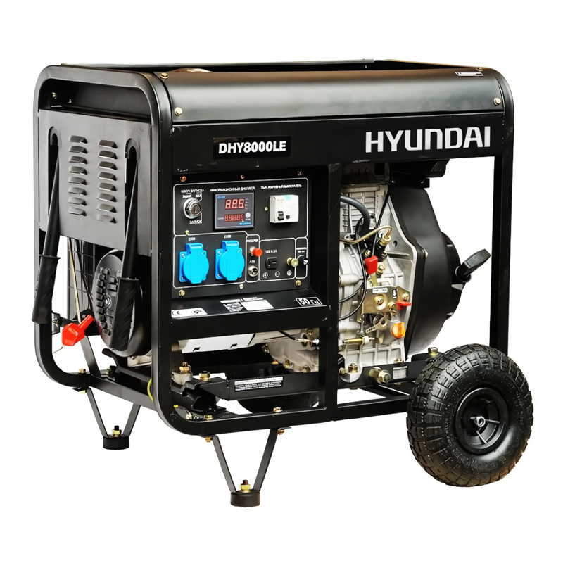 Дизельная станция Hyundai DHY 8000LE работает на фирменном двигателе HYUNDAI серии IC. Для безопасного использования предусмотрена аварийная остановка при недостатке масла, а также защита от перегрузок и короткого замыкания. В конструкции предусмотрены два типа фильтров, которые предотвращают загрязнение аккумулятора.