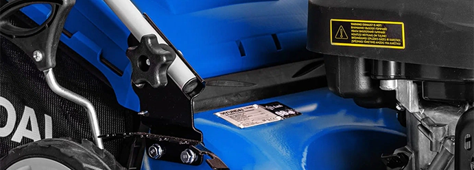 Высота рукоятки регулируется по высоте. Вы можете установить ее в удобном для вас положении. Нож приводится в движение 4-тактным бензомотором Hyundai ICV180 мощностью 5,2 л.с. Именно за счет него газонокосилка рассчитана на длительную работу с большими участками.