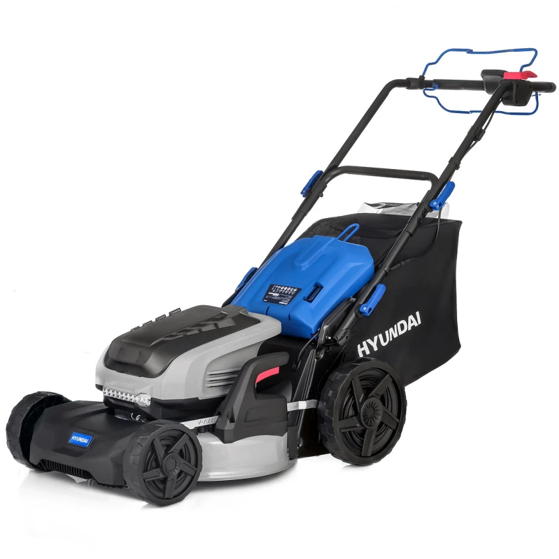 Самоходная машина имеет удобные элементы управления и наглядную индикацию, показывающую скорость движения и уровень заряда. Ключ безопасности защищает от случайного включения. Аккумуляторная газонокосилка Hyundai поддерживает четыре режима работы: сбор травы в большой контейнер, мульчирование выброс назад и в сторону. Центральная регулировка высоты скашивания позволяет быстро поднимать и опускать деку с ножом посредством перестановки одного рычага. Яркая фара освещает газон, повышая удобство работы в сумерках.