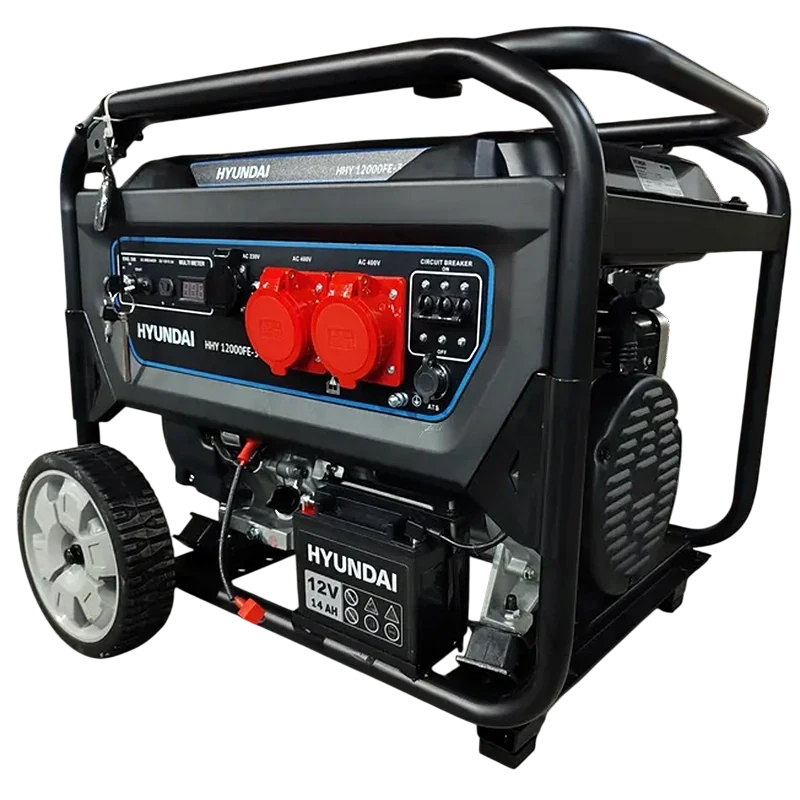Трехфазный бензиновый генератор HYUNDAI HHY 12000 FE-3 с электрозапуском. Встроена функция силового переключения между 220 и 380 Вольт. Максимальная мощностью электростанции до 9.5 кВт переменного тока. Бензогенератор с AVR (автоматический регулятор напряжения). Есть функция электрозапуска с ключа и пульта, от установленного в конструкцию аккумулятора. Время работы на одной заправке при половинчатой нагрузке - до 14 часов. Купить бензогенератор HYUNDAI HHY 12000 FE-3 рекомендуем владельцам больших загородных домов в качестве резервного источника питания на случай внезапного отключения сетевого электроснабжения. Также электростанция будет незаменима на строительных объектах в качестве локального источника постоянной электроэнергии.