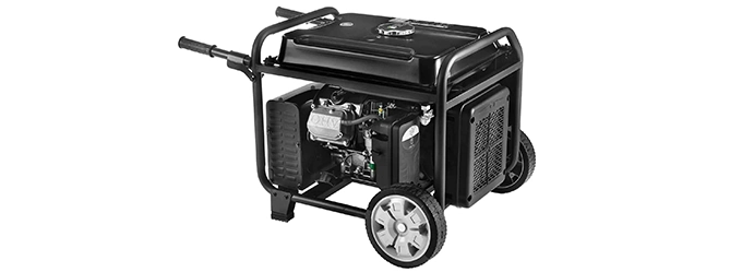 Генератор оснащен складными ручками и колесами для перемещения. Он помещается в багажник автомобиля и не занимает много места при хранении.