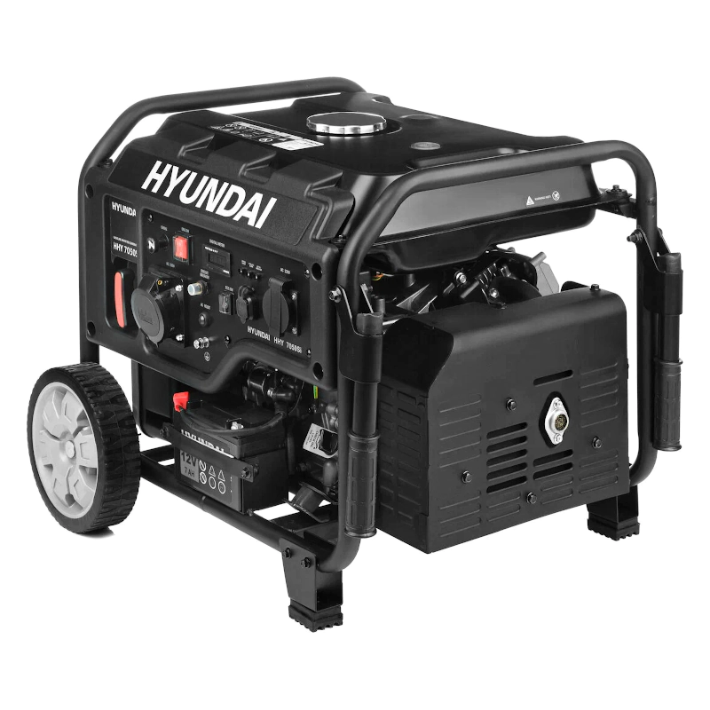 Генератор Hyundai HHY 7050Si оснащен четырехтактным двигателем мощностью 9,5 л.с., который легко заводится поворотом ключа в замке зажигания благодаря наличию электростартера. Потребителей можно подключать к двум розеткам 230 В 16 А и 32 А. Два 5-вольтовых USB-разъема служат для зарядки телефонов и прочих мобильных устройств.