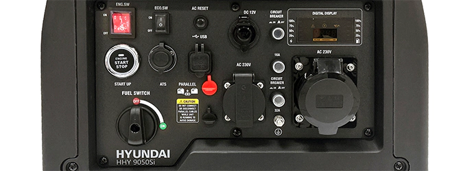 Hyundai HHY 9050Si имеет две розетки 230 В для подключения бытовой техники или строительного инструмента. Также есть выход постоянного тока напряжением 12 В для зарядки автомобильной АКБ и два USB-разъема для подключения смартфона, планшета и других гаджетов. Регулятор AVR стабилизирует выходное напряжение, гарантируя стабильное питание подключенной техники. Также он бережет двигатель генератора от перегрузки, предотвращая его раннюю поломку.
