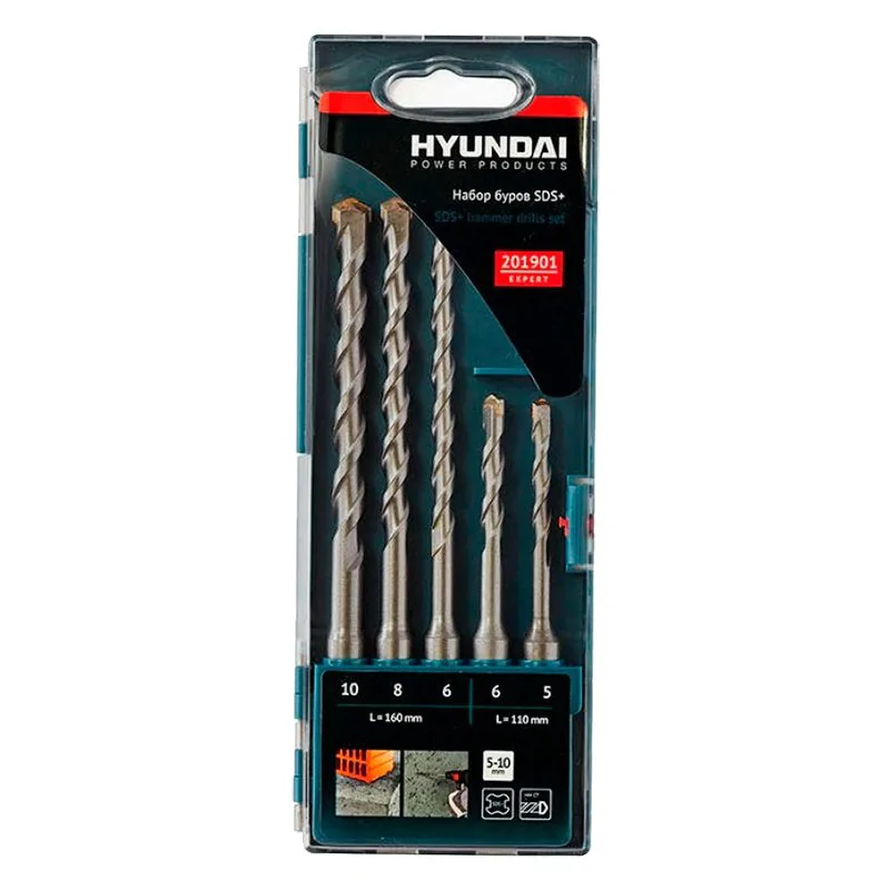 Набор буров для перфораторов Hyundai SDS+, 5 шт. HYUNDAI 201901 позволяет иметь под рукой необходимую оснастку при ремонтных и отделочных работах. Быстро просверливает отверстия в бетоне и кирпиче.