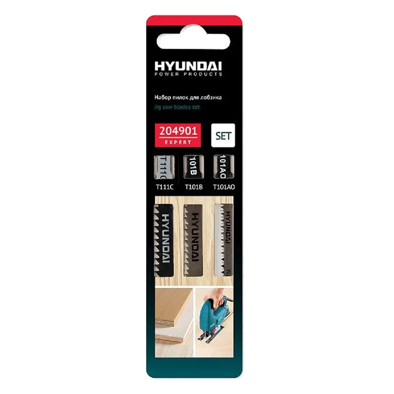Пилки для лобзиков по дереву и пластику Hyundai 204901, 3 шт в наборе