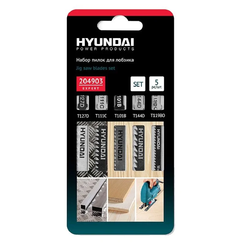 Пилки для лобзиков по дереву и металлу Hyundai 204903, 5 шт в наборе
