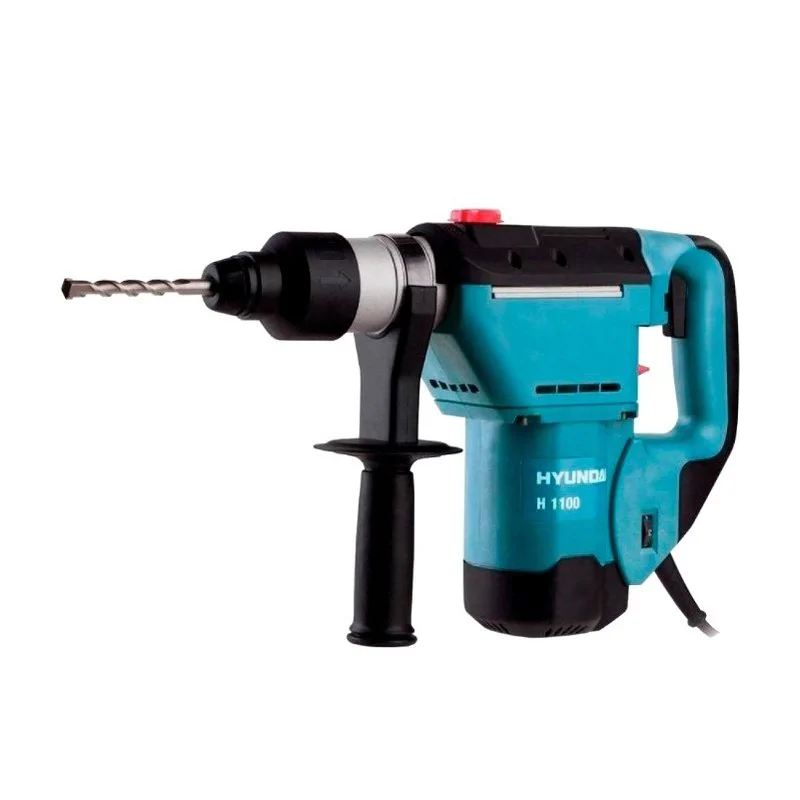 Перфоратор Hyundai H 1100 оснащен двигателем мощностью 1050 Вт и выдает энергию удара 4 Дж. Инструмент работает в трех режимах. Вы можете использовать его для сверления с ударом в бетоне, кирпиче и камне отверстий диаметром до 32 мм, для легких долбежных работ и для безударного сверления в древесине (до 36 мм), металле (до 13 мм), керамике и пластике.