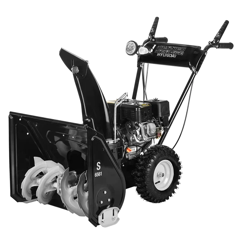 Зимний двигатель с ручным стартером без проблем заводится в мороз до -30°С. Праймер для предварительной подкачки топлива и система подогрева карбюратора облегчают запуск. Если поблизости есть электрическая розетка с напряжением 220 В, вы быстро заведете снегоуборщик Hyundai S 6561 нажатием кнопки электрозапуска.