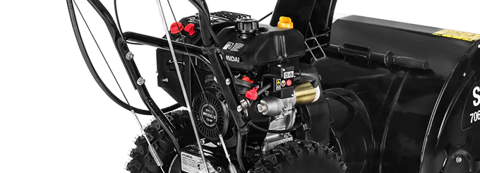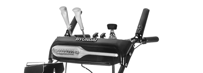 Мотор Hyundai S 7066 заводится как электрическим, так и ручным стартером. Подогрев карбюратора облегчает запуск двигателя даже в мороз до -30°C. Привод на колеса позволяет бензиновому снегоуборщику Hyundai двигаться без вашего вмешательства. Вам только понадобится задавать скорость движения. Для этого на выбор есть 5 передач вперед, а также 2 назад. Задний ход облегчает парковку и упрощает разворот в узких местах.